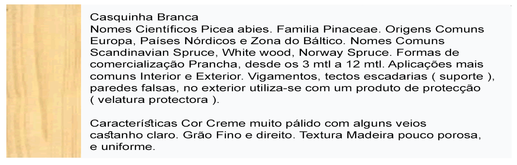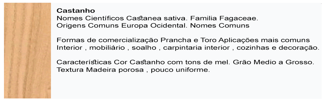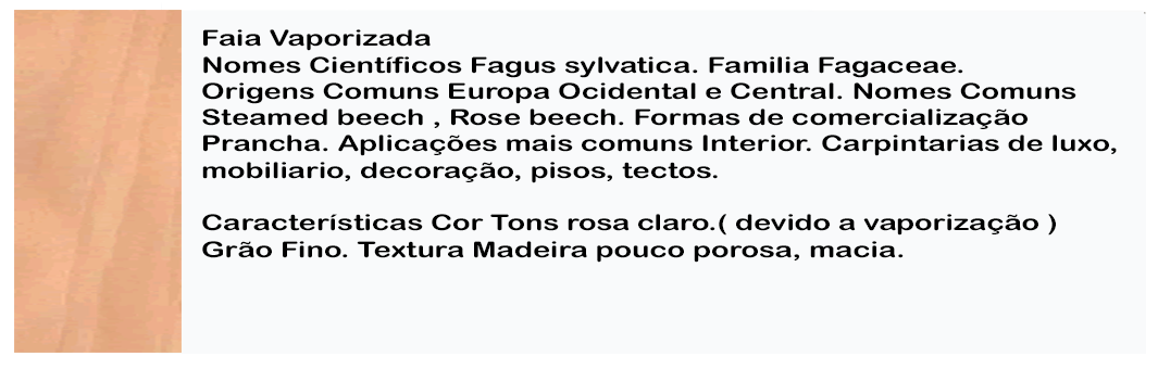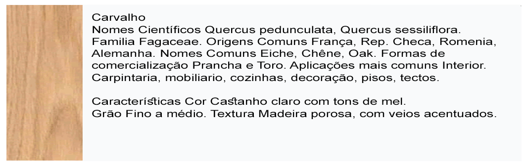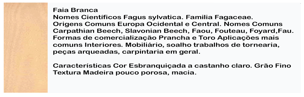 Riga   Freixo   Faia Vaporizada   Faia Branca   Castanho   Casquinha Vermelha   Carvalho   Casquinha Branca